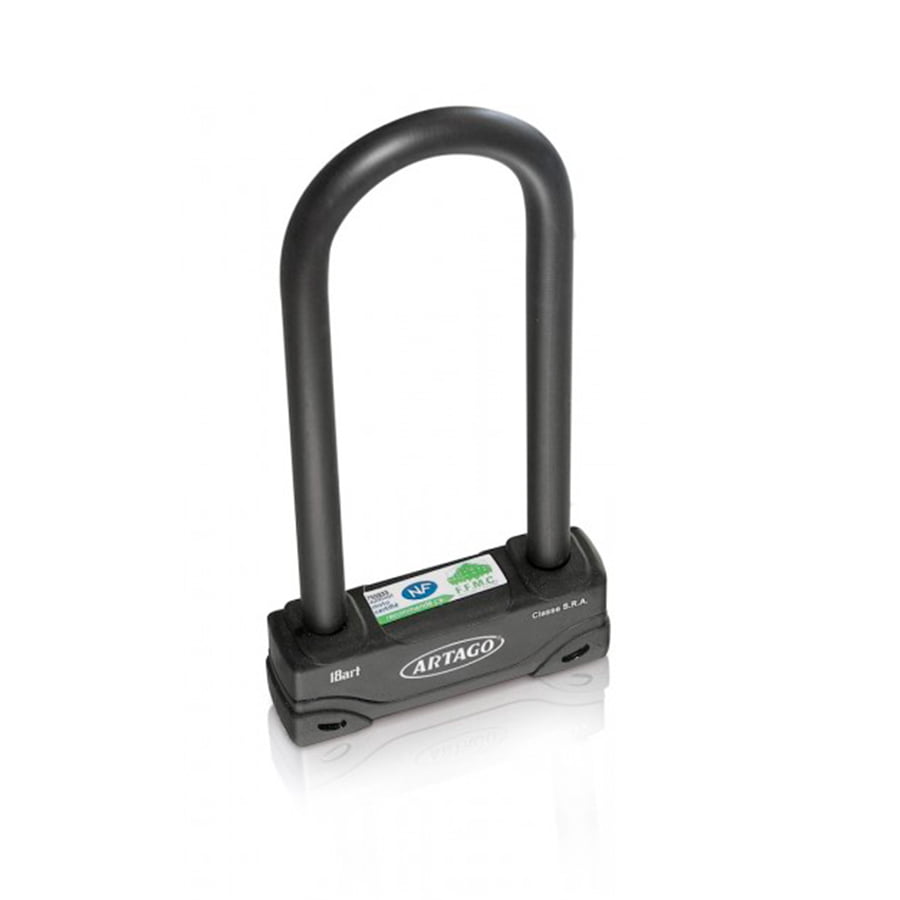 Antirrobo para moto de la marca Artago en forma de U, con 18 de diámetro.