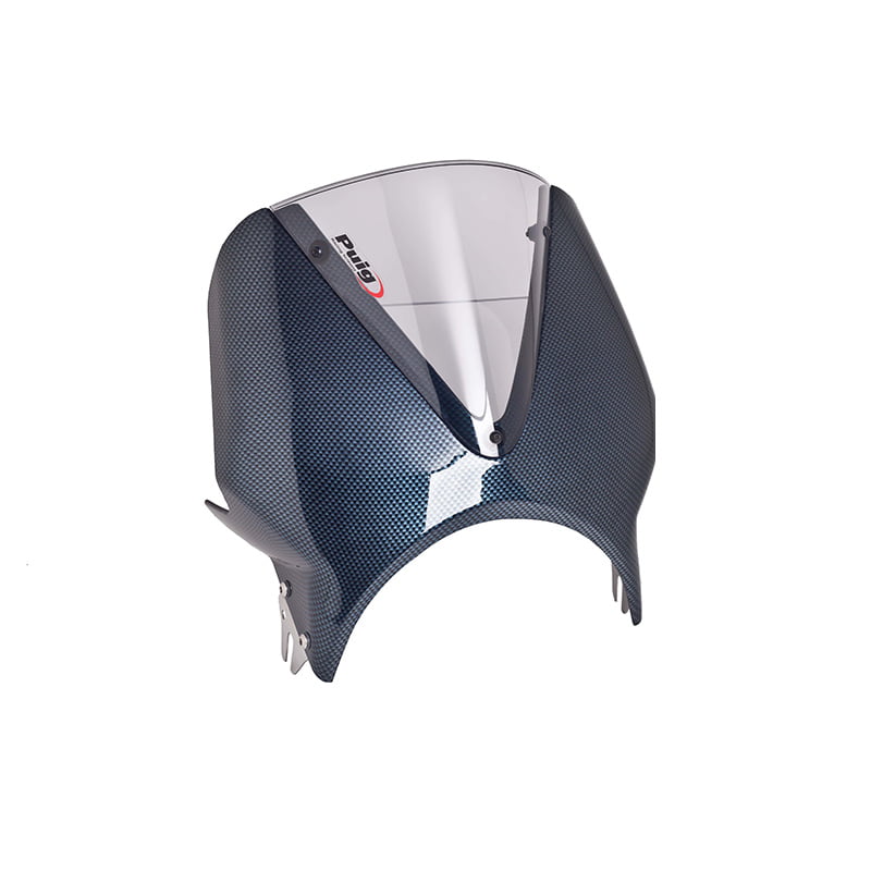 Cúpula Carenabrís corto para faro redondo modelo VISION de la línea de carenabrises PUIG Street Screens. Estos carenabrises resaltan por su calidad, fácil montaje y su diseño.Estos carenabrises permiten mejorar la aerodinámica y diferenciar a tu motocicleta de las demás dándole un toque más personal.Este carenabrís tiene la particularidad que se ofrece el semicarenado en dos colores: negro y símil carbono, y después el usuario puede escoger el color de la cúpula que se monta en el semicarenadoDisponemos de un modelo universal que se adapta a la mayoría de motocicletas de faro redondo del mercado. Por algunos modelos específicos se sirve un kit especial.Se entregan con unos folletos de instrucciones simples y visuales para que en pocos minutos pueda tener montado el carenabrís en su motocicleta. 2 puntos de fijaciónSi tiene una motocicleta de faro redondo, no se lo piense y monte una de nuestros carenabrises no se arrepentirá.