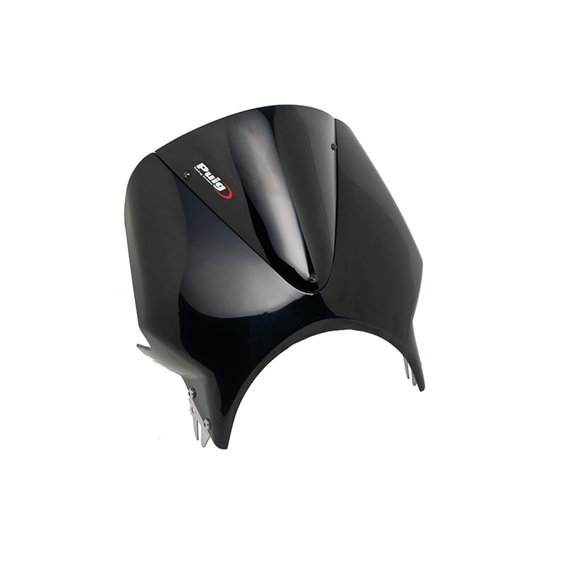Cúpula Carenabrís corto para faro redondo modelo VISION de la línea de carenabrises PUIG Street Screens. Estos carenabrises resaltan por su calidad, fácil montaje y su diseño.Estos carenabrises permiten mejorar la aerodinámica y diferenciar a tu motocicleta de las demás dándole un toque más personal.Este carenabrís tiene la particularidad que se ofrece el semicarenado en dos colores: negro y símil carbono, y después el usuario puede escoger el color de la cúpula que se monta en el semicarenadoDisponemos de un modelo universal que se adapta a la mayoría de motocicletas de faro redondo del mercado. Por algunos modelos específicos se sirve un kit especial.Se entregan con unos folletos de instrucciones simples y visuales para que en pocos minutos pueda tener montado el carenabrís en su motocicleta. 2 puntos de fijaciónSi tiene una motocicleta de faro redondo, no se lo piense y monte una de nuestros carenabrises no se arrepentirá.