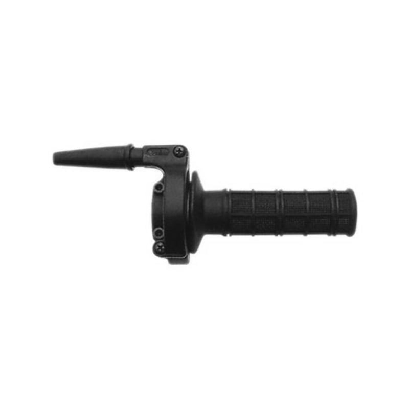 Mando de acelerador Domino para motos de cross y enduro. Características:-Movimiento horizontal.-Monocable.-Aro con dos posiciones (CROSS/ENDURO). CROSS:-Velocidad 1.9º/mm.-Recorrido máximo 52mm. ENDURO:-Velocidad 2.2º/mm.-Recorrido máximo 45mm. Sin puños.